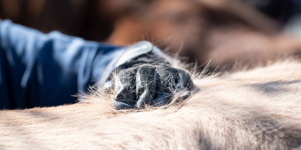 Las caspas de húmedad -también conocido como eczema de la lluvia- aparece en forma de pequeñas pústulas y costras en la espalda y predominantemente en la estación húmeda.